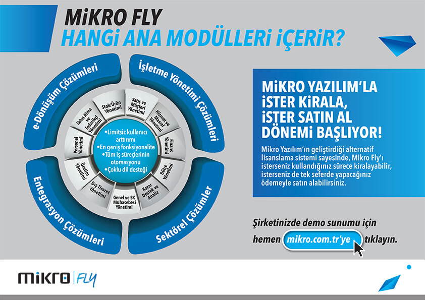 Siz de iş süreçlerini verimli ve karlı bir şekilde yönetmek, zamandan ve maliyetten tasarruf etmek, analizler ve veriler ışığında doğru kararlar alıp rekabette öne çıkmak, en büyük olmak istiyorsanız Mikro Fly tam size göre.